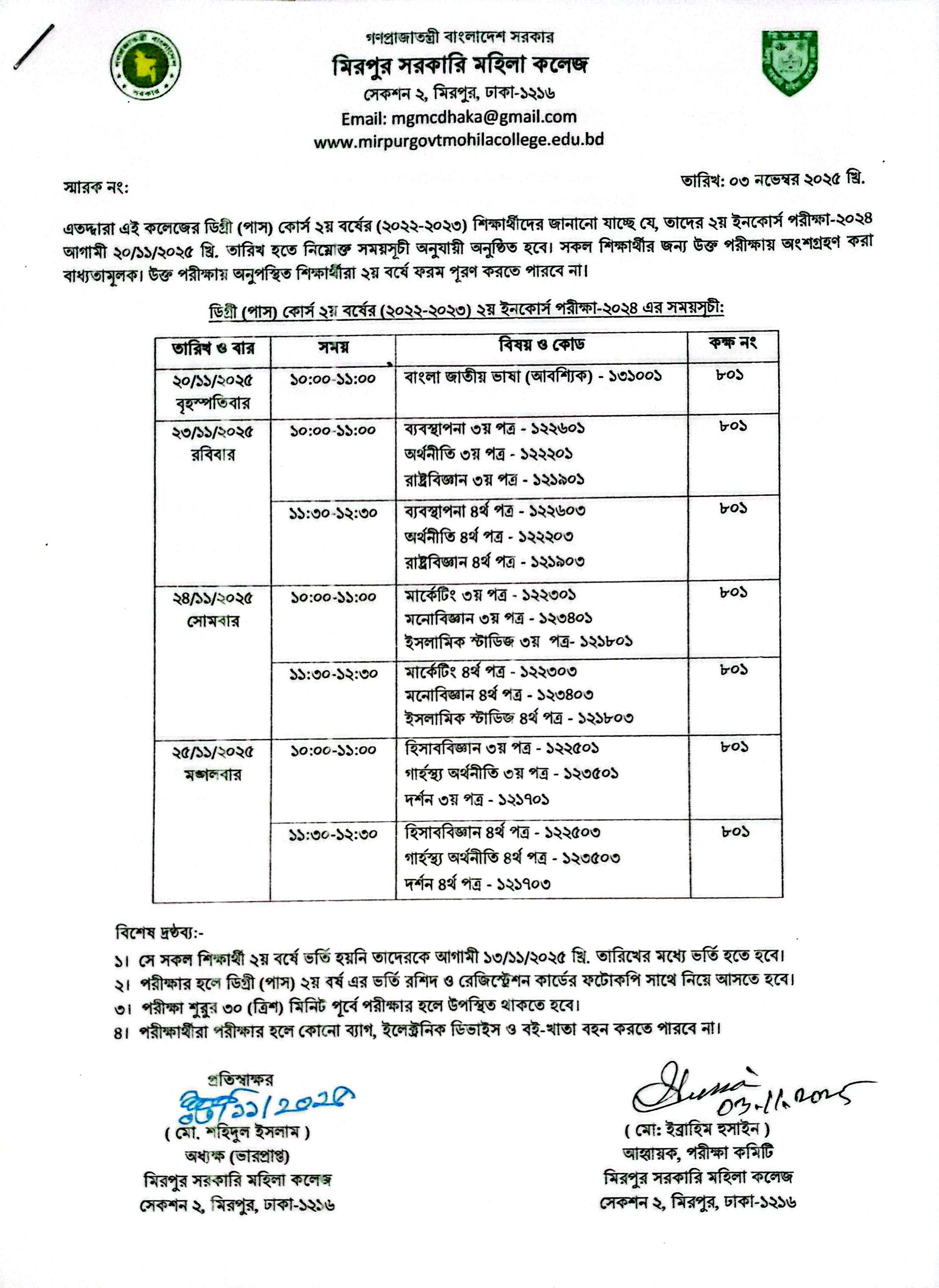 ২০২২-২০২৩ শিক্ষাবর্ষে ডিগ্রী ২য়বর্ষে ইনকোর্স পরীক্ষার রুটিন
